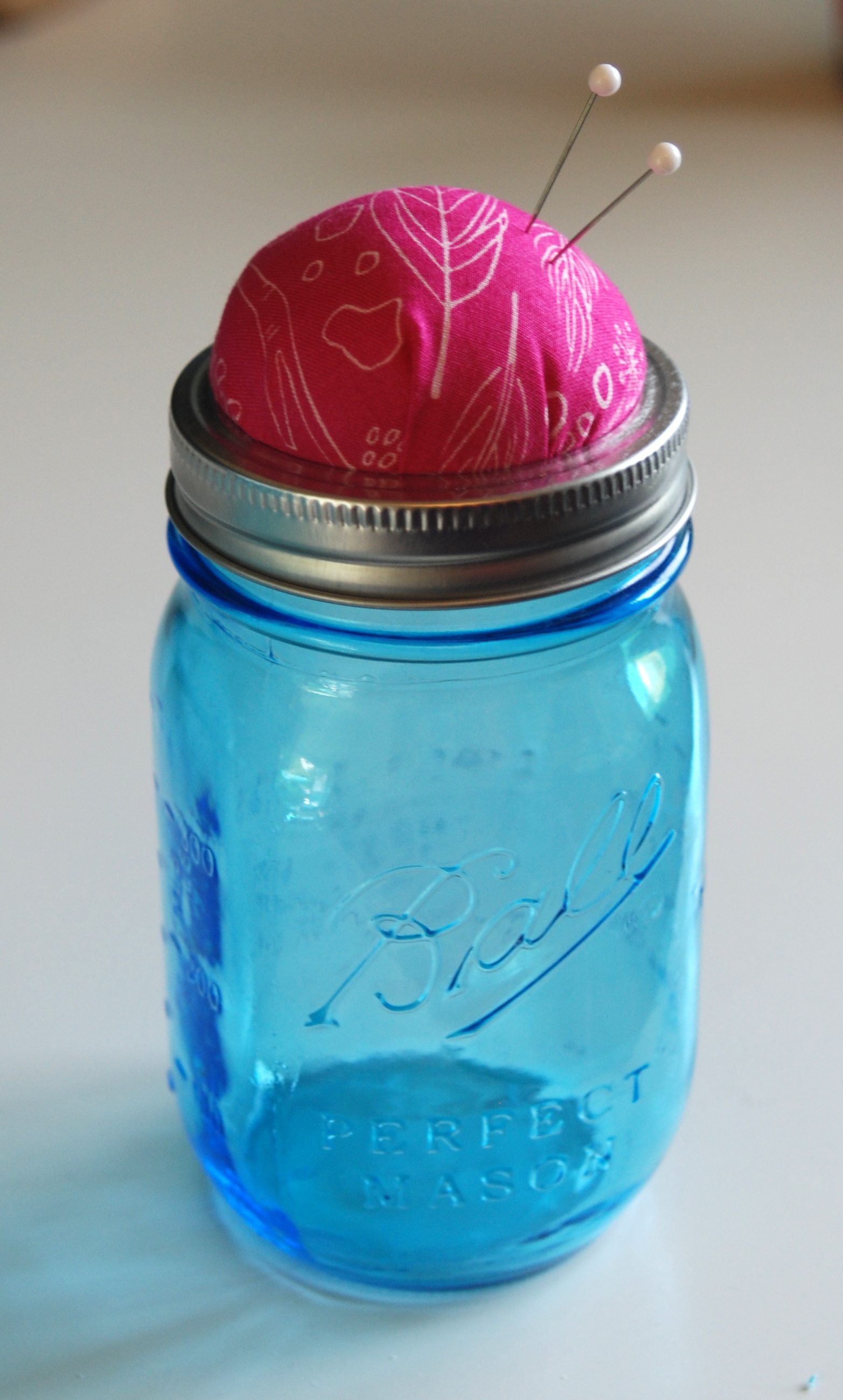 I am obsessed with these blue mason jars. A year or so ago when they started making them I may have bought a dozen with no real purpose… But then I used them in centerpieces at my Ecuadorian sister’s wedding (it is fine to have lots of extra families you choose, right?) so it was totally justified… Sure. Anyway, I found a way to make some of them into pin cushions and I adore them. I use one all the time and love giving them as gifts. Also, did I mention they are super easy to make if you like using glue guns? (And I DO!)