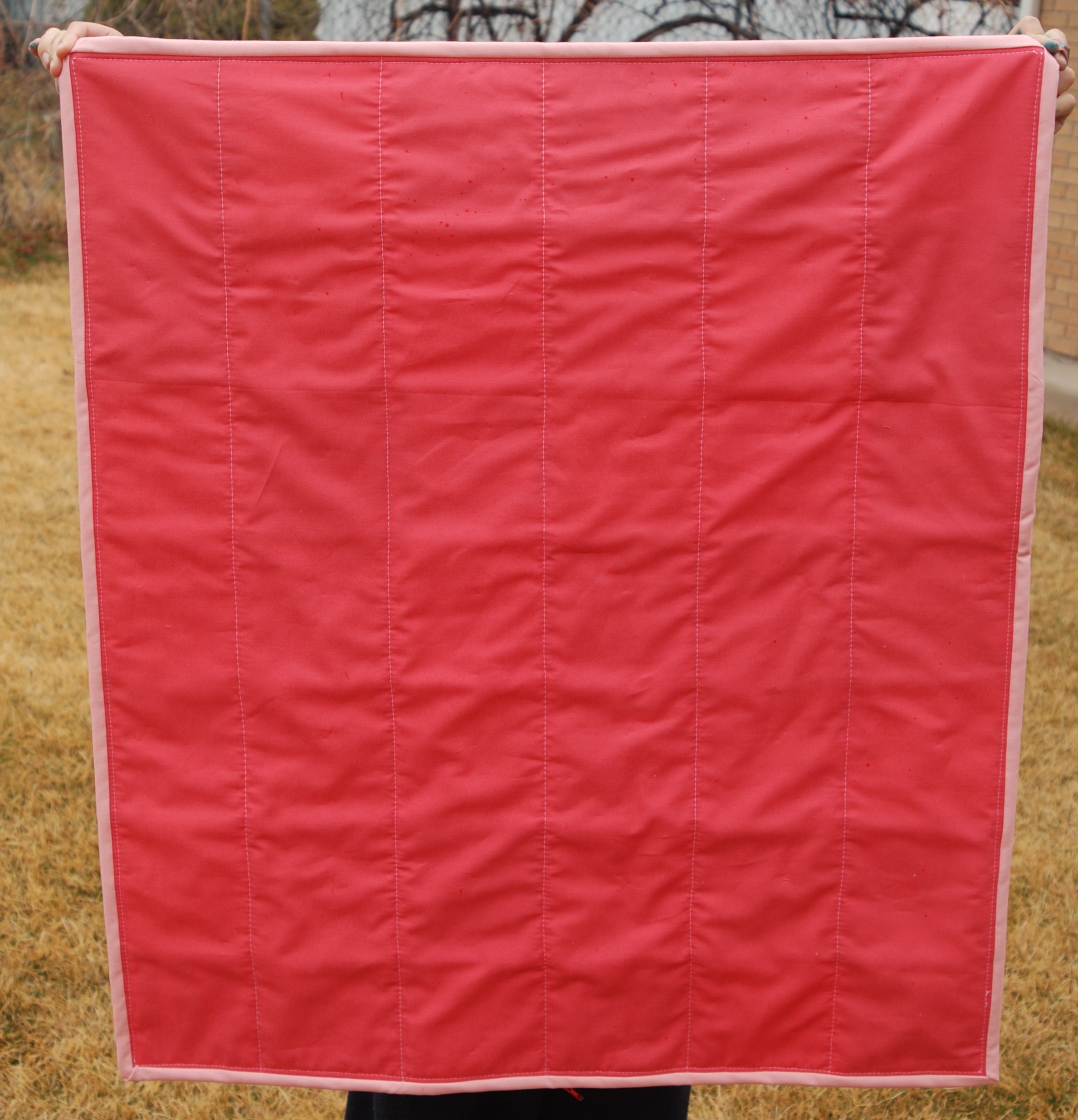 This is another fabulous line called Color Theory by V & Co. for Moda. This one I quilted vertically down one side of the squares, backed it with a beautiful pink Kona Solid, and bound it with a light pink Kona Solid.